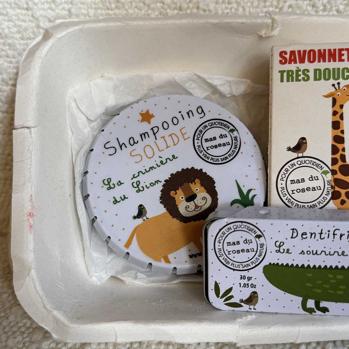Prix régulier 15 €Initiez votre enfant aux soins solides avec ce coffret ludique et complet. Trois essentiels du quotidien – savon, shampooing et dentifrice – réunis dans un format pratique et amusant. Parfait pour les petits explorateurs qui découvrent les rituels de soin. Zéro déchet, zéro prise de tête : des produits solides faciles à utiliser et à transporter partout. Un cadeau malin pour les parents éco-responsables.