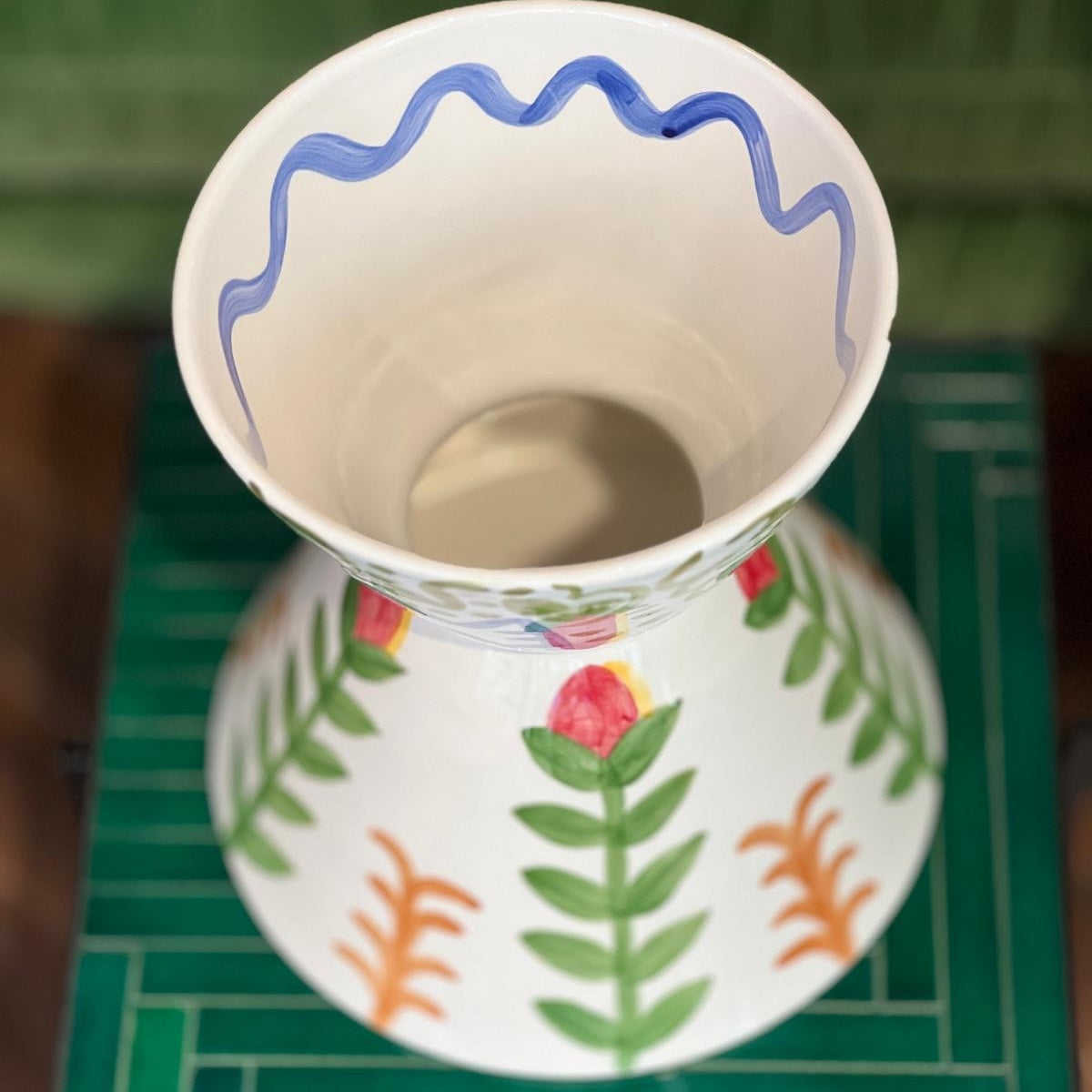 Ces vases magistraux peints à la main et déclinés en trois modèles sont pensés comme de véritables sculptures colorées faisant vivre l’atmosphère tropicale de l'artiste.