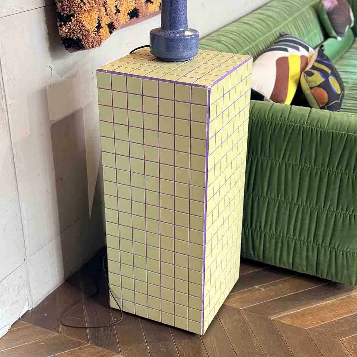 Ses petits carreaux créent un joli jeu de matière et de lumière, parfait pour mettre en valeur une lampe, un vase ou votre objet préféré. Pratique, elle est montée sur roulettes pour se déplacer facilement au gré de vos envies. Une pièce déco pleine de caractère, aussi belle que fonctionnelle.